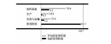 從圖中可以看出在加氣磚使用階段二氧化碳的排放量遠高于其它階段。因此我們將重點放在如何解決使用過程中排放量過高的問題。